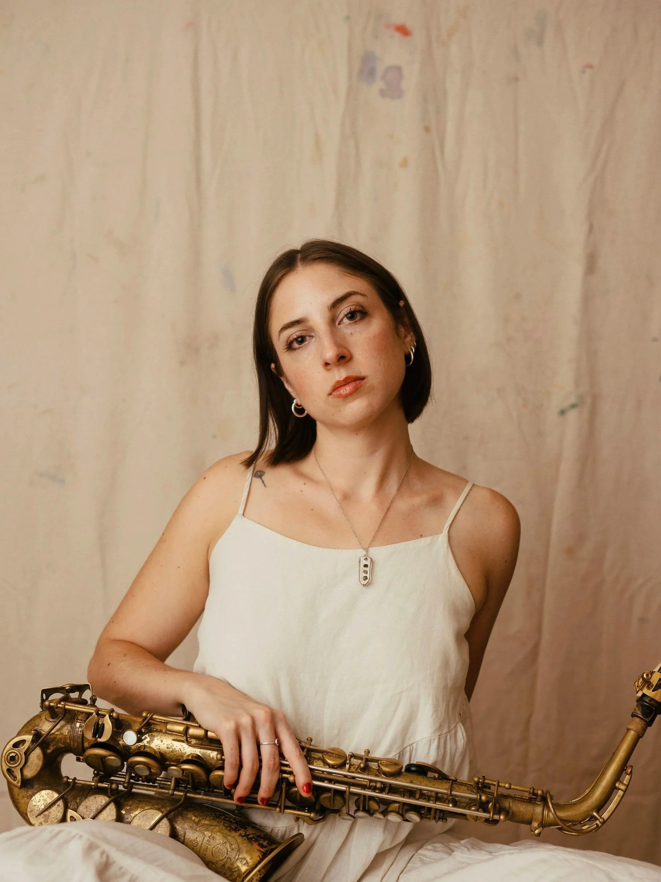 Alden Hellmuth is a saxophonist, improviser, and composer “out of the ordinary” (In & Out Jazz) and currently based in New York. Originally from Hartford, Connecticut, she grew up surrounded by the legacy of the great saxophonist Jackie McLean and received her bachelor’s degree from the Hartt School at the University of Hartford. In 2025 she received her master’s degree from the Herbie Hancock Institute at UCLA, where she was mentored by artistic director Ambrose Akinmusire and Herbie Hancock. Grounded by her foundations in tradition and drawn to a wide spectrum of experimental musical practices, Alden is deeply inspired by art that moves with emotion and lives within dissonance. As a composer and improviser, Alden strives for authentic expression through freedom, intuition, and a deep dedication to her craft. Her debut album, "Good Intentions," released in September 2024 under the Fresh Sound New Talent label, won “Debut Album of the Year International” (Deutscher Jazz Preis) and garnered international acclaim, with Steve Smith of For The Record describing it as "a vital debut," and Culture Jazz praising it as "...full of character, great imagination, and vibrant energy." She recently recorded her sophomore album with Justin Brown, Logan Kane, and Miller Wrenn, featuring Paul Cornish and Yakiv Tsvietinskyi.